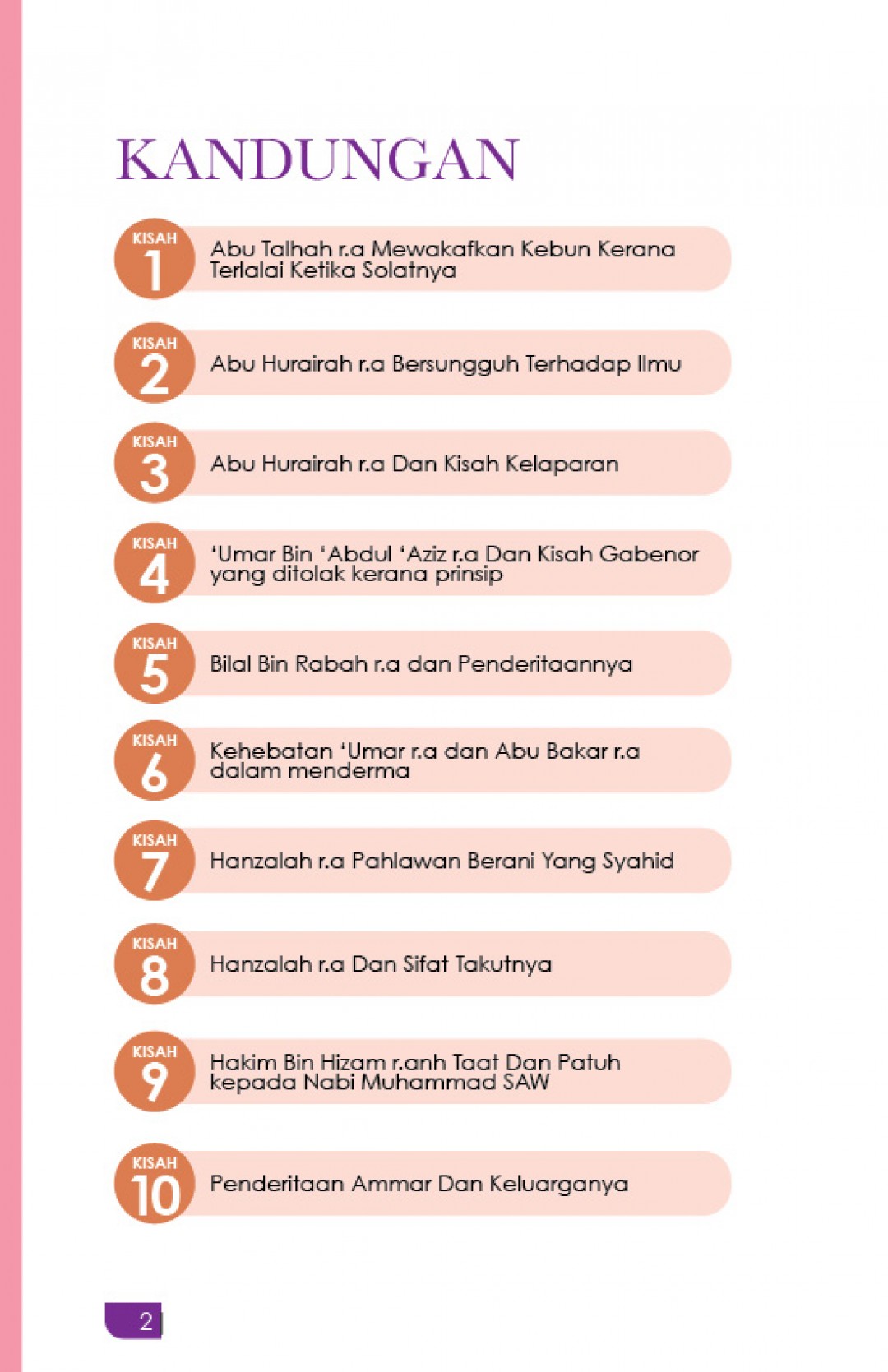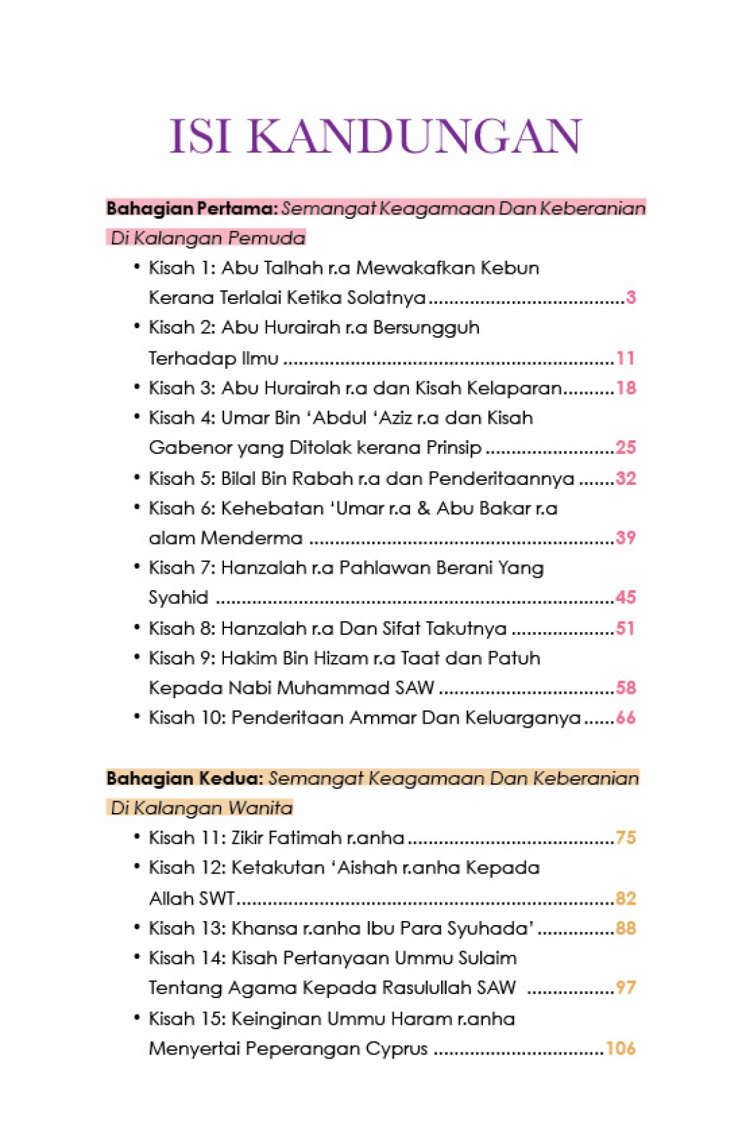 Mereka bukan insan biasa. Para sahabat Nabi SAW adalah generasi terpilih yang sanggup mengorbankan harta, keluarga bahkan nyawa demi Allah dan Rasul-Nya. Di sebalik nama-nama besar seperti Abu Hurairah, Bilal bin Rabah, Umar, Abu Bakar, Khansa’, Asma’ dan ramai lagi, tersimpan kisah yang mampu mengetuk hati kita yang sering lalai dengan dunia.