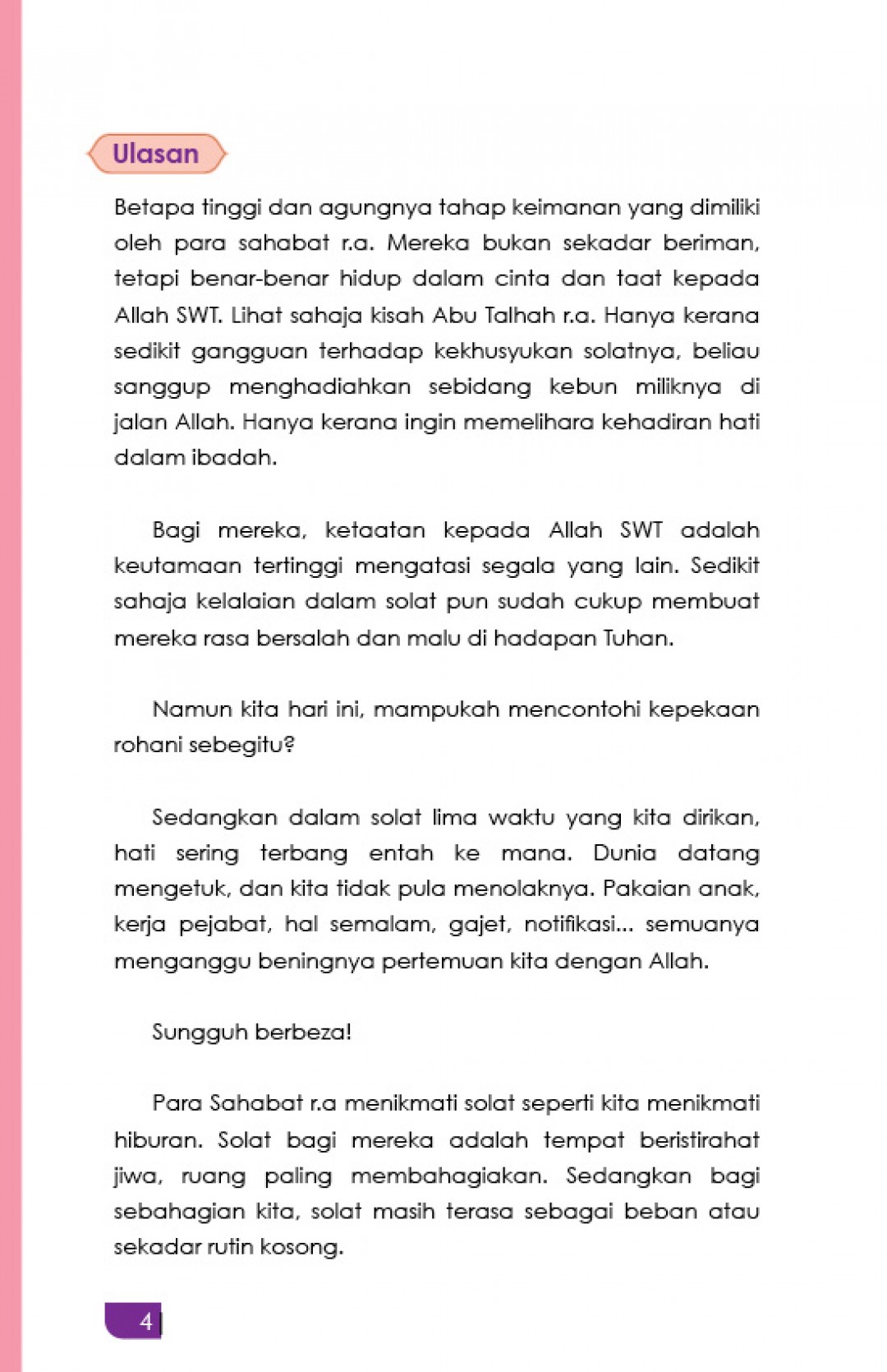 Buku ini menghidupkan kembali semangat juang mereka dalam bentuk cerita yang dekat dengan jiwa. Setiap kisah disertai ulasan, pengajaran, doa, dan amalan praktikal agar kita bukan sekadar membaca, tetapi turut merasai getar iman mereka.